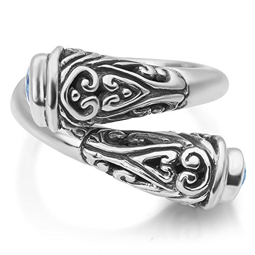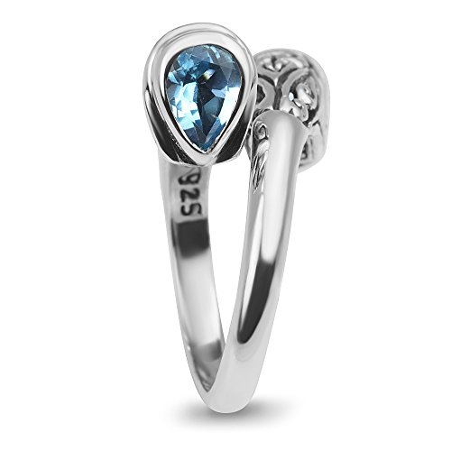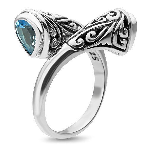 -. Title : 925 Sterling Silver Filigree Blue Topaz Stone Band Ring Women Jewelry Size 6, 7, 8