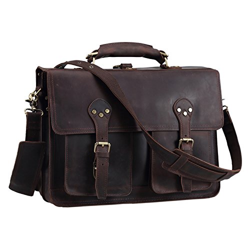 -. Title : Texbo Thick Leather Vintage Shoulder Briefcase, 16 Inch Laptop Tote Bag