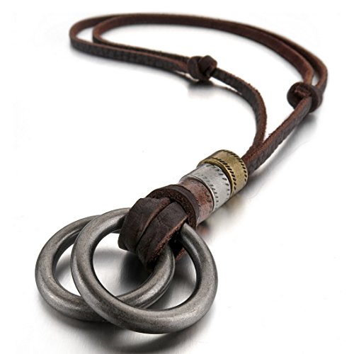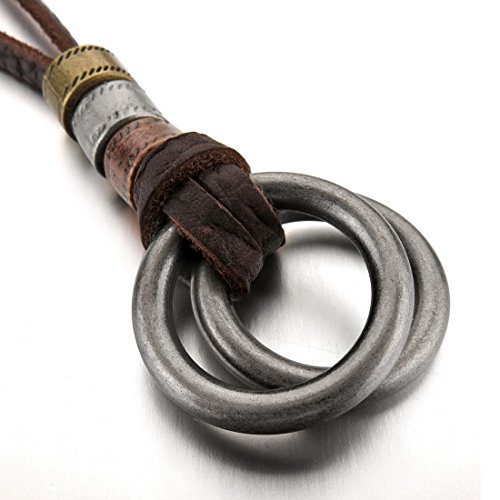 - Title : Men's Alloy Genuine Leather Pendant Necklace Adjustable Silver Rings Vintage-with Chain (with Gift Bag)