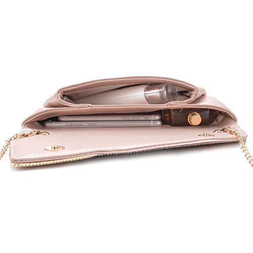 ❤-Unbelievable Capacity: This handbag party bag with detachable chain strap ,Two big main pocket and small card pocket. Capable of iphone8plus, your key fob, lipstick, or lip gloss, powder, small brush, some credit cards and a pair of glasses.