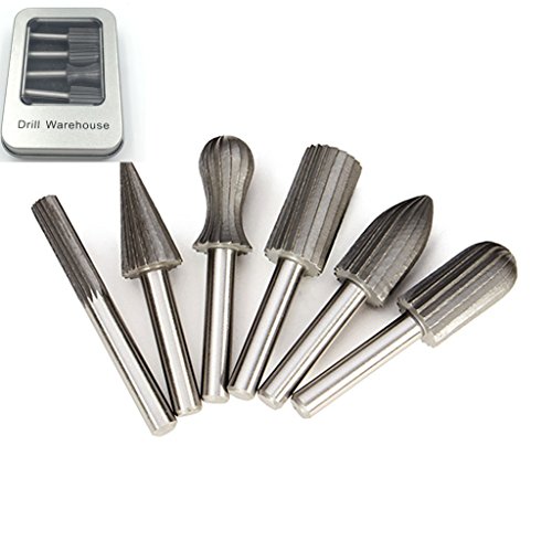 Drill Warehouse 6pcs Double Cut Cylinder Tungsten Carbide Rotary File Cutter Bit 6mm Shank Tungsten Engraving Grinding Bit for Rotary Tools