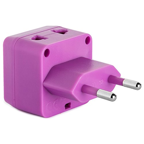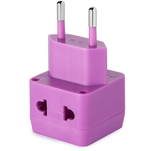 Yubi Power 2 in 1 Universal Travel Adapter with 2 Universal Outlets - Built in Surge Protector - Purple 2 Pack - Type C for France, Germany, Hungary, Portugal, Russia, Spain, Sweden, Egypt, Turkey