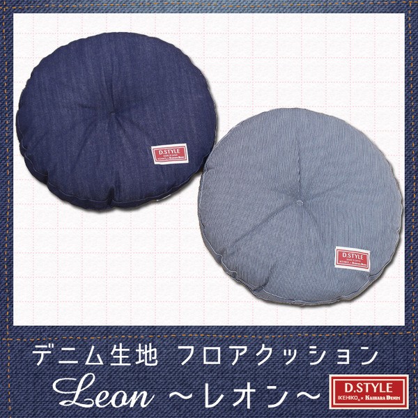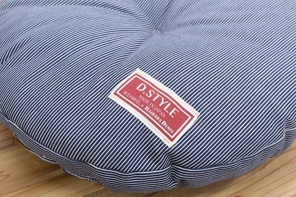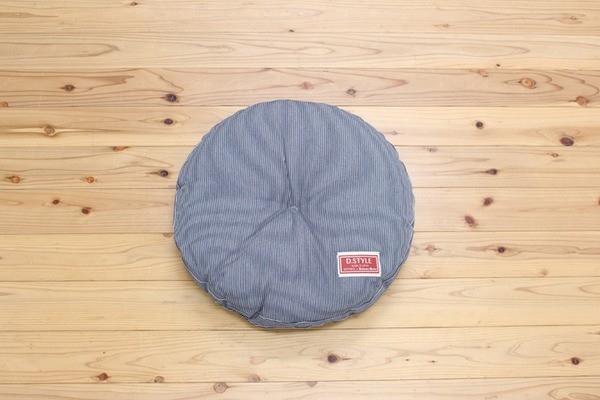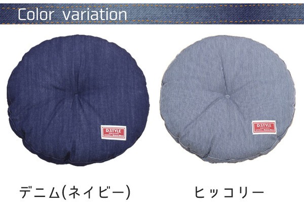 【商品名】クッション リビング用 国産 デニム ストライプ柄 『レオン』 ヒッコリー 約55×5cm丸