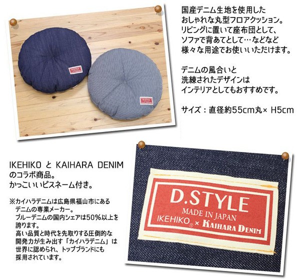 国産のデニムメーカーとコラボした、綿100%のクッションです。デニム生地を使用しているためお部屋の雰囲気を崩さず、どんなお部屋にもなじみやすい商品です。1つ置くだけでカジュアルでおしゃれなお部屋へと変身できます。