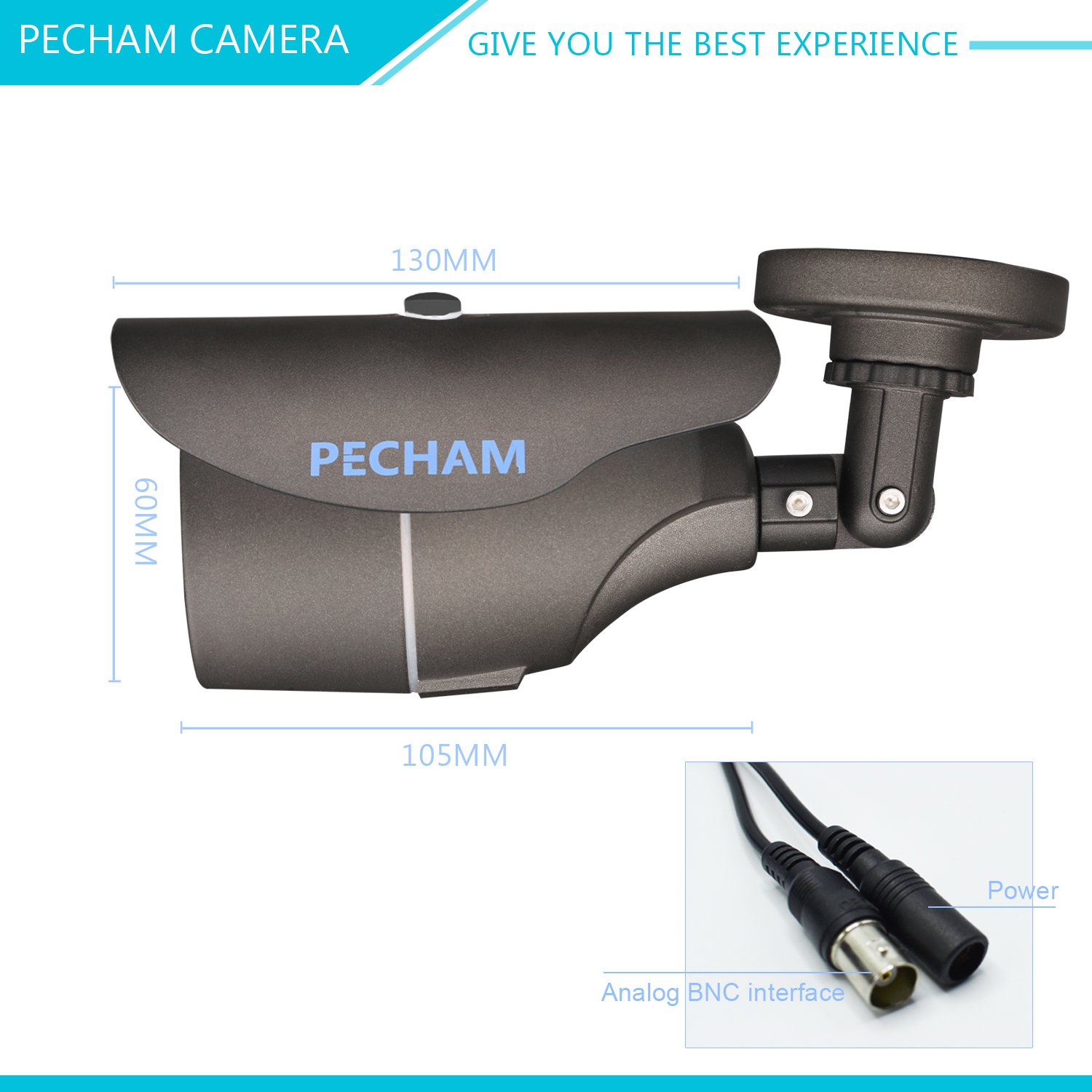 At the end, it is divided into video output terminal (BNC) and power input terminal.