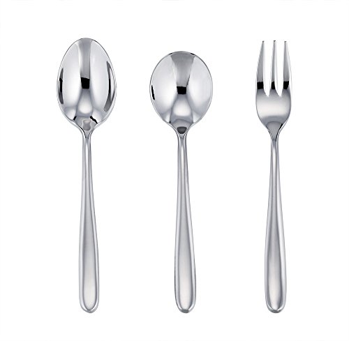 -. Feature : ★ HEALTHY - Made of pure stainless steel without any other materials, Non-toxic and healthy for kids everyday using. / ★ SAFETY - Smooth edge no rough spots, Fork not too sharp, Thick gauge would not hurt baby's fragile lips. / ★ HEAVY DUTY - Sturdy construction with mirror finish surface, Proper weight for little hands to grip on comfortably. / ★ PRACTICAL - Easy clean either by hand or in the dishwasher, A carrying case attached convenient for outdoor activities. / ★ PERFECT SIZE - 5.5-inch oval spoon x 1, 5.3-inch round spoon x 1, 5.5-inch fork x 1, Perfect shape to fit toddlers' small mouth.