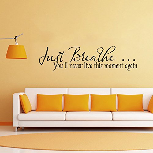 -. Binding : Kitchen -. Brand : Hi-Shop -. Color : Black -. EAN : 0710699802563 -. Feature : Easy to Apply and remove. / This decal is a wonderful addition to any room / Peel & stick; Remove in seconds without damaging your paint / Eco-friendly, non-toxic decals. / Please note that the black color is the default option, any other colors please leave us the message! -. IsAutographed : 0 -. ProductGroup : Home -. ProductTypeName : HOME -. Title : "Just Breathe" Quote Decors Wall Saying Decals Quote for Home Wall Stickers Nursery Decor Living Room Wall Decals -. UPC : 710699802563