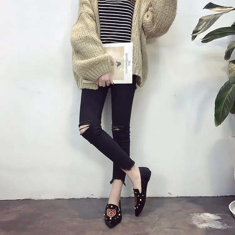 Mocasines mujer:metal decoration shoes