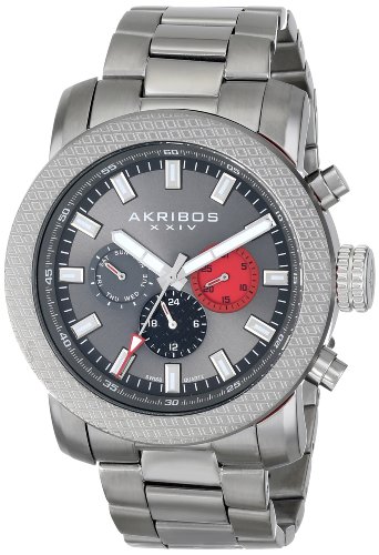 Studio : Akribos XXIV Publisher : Akribos XXIV Binding : Watch Product Description This classic Akribos XXIV men's timepiece features a sunray dial with luminescent hands and hour markers. Powered by a Swiss quartz multifunction movement, the day, date, and GMT (24 hour) sub dials and etched pattern bezel are sure to finish this fine timepiece. 0