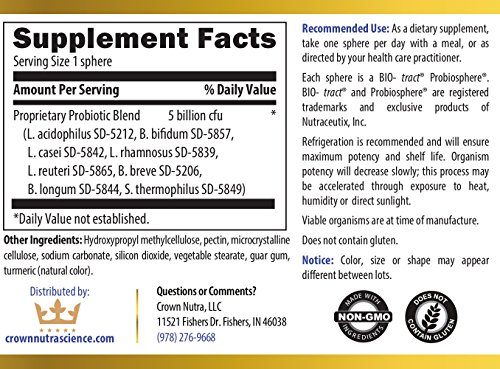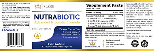 NutraBiotic by Crown NutraScience - Advanced Probiotic Formula, 5 Billion CFU with Patented Time Release Spheres 15x More Effective than Capsules,...