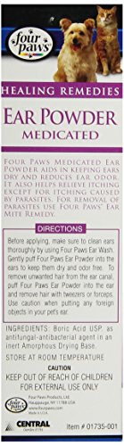 Four Paws Medicated Ear Powder keeps ears dry while reducing ear odor. Aids in the relief of itching and makes the removal of hair from the ear canal easier. (24g)Feature