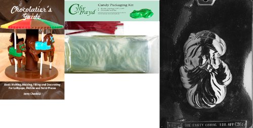Cybrtrayd Mdk25RBk-C165 Santa Head Chocolate Mold with Chocolatier's Bundle of 25 Cello Bags, 25 Red Twist Ties and Chocolatier's Guide