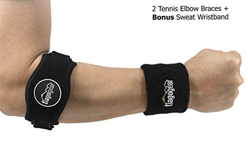 INCLUDES TWO ELBOW BRACES + AN AWESOME *BONUS* GIFT: You get NOT ONE but TWO high quality elbow braces. Wear them on the left or right forearm / have a backup all the time. PLUS, get a BONUS high quality black sweat wristband!