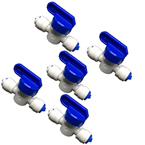 PureSec 2017 HV1414 mini white plastic quick fitting straight inline shut off Ball valve Hand valve for tubing OD 1/4"x 1/4"used for RO system refrigerator ice maker coffee machine(Pack of 5)