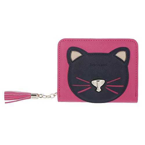 -. Feature : A good gift for your girl. / Cute cat applique with golden-tone nose decorated. / Around zipper with tassel fastened. / 1 cash layer, 2 zipper pouches, 2 card slots and 1 photo window. / Purse measurement: 11.7 x 9.3 x 3cm (4.6 x 3.6 x 1.2 inches).