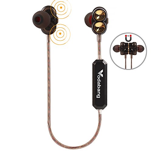 Bluetooth Headphones Vodabang High Definition Dual Dynamic Driver Magnetic Heavy Bass Wireless Earbuds Sport In-Ear Sweatproof Earphones with Mic Black