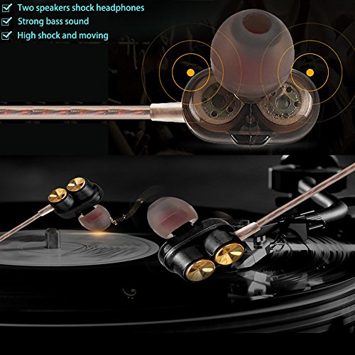 Dual Dynamic Driver Ensure Excellent Heavy Bass Sound:High definition crystal clear sound is reproduced by high performance dual neodymium magnet moving coil drivers.(Each earbud has two speakers)