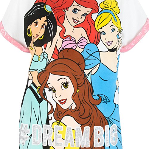 Ladies Disney Princess pajamas. Make bedtime a truly Royal event with these magical Disney Princess PJs. A comfortable pajama set that comes with a short sleeved top with rolled sleeves and matching printed bottoms. The top features your favourite Disney Princesses: Ariel, Belle, Cinderella and Jasmine, and the all-over print on the bottoms will remind you of the elements of the classic films like Belle's Rose and Cinderella's shoe. Made of 100% cotton, you'll feel like a true princess even at bedtime.Feature