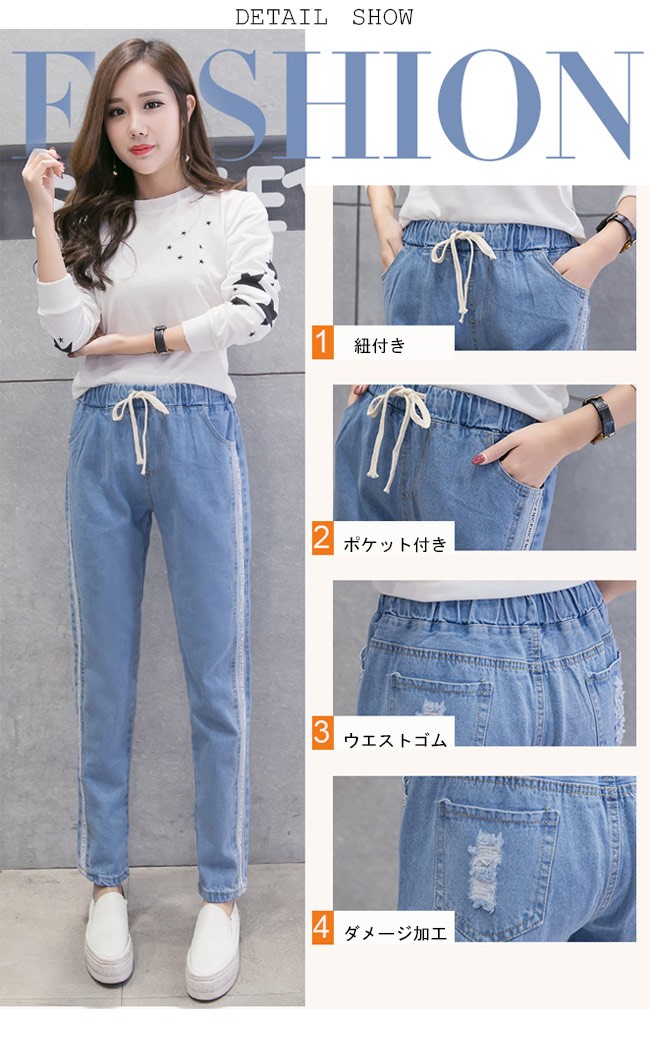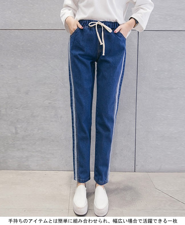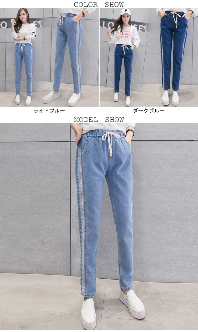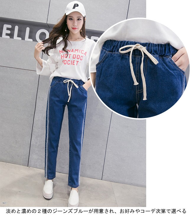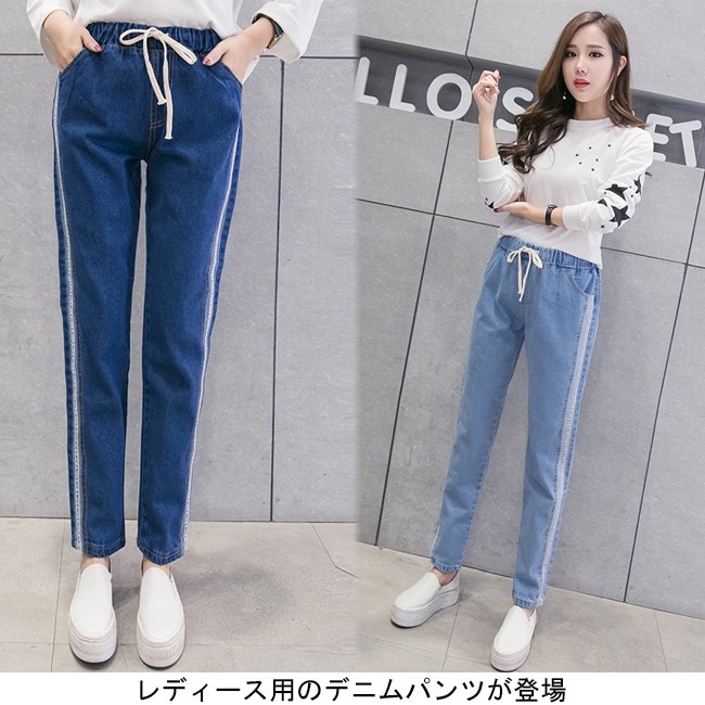 デニムパンツ レディース ストレートパンツ デニム ウエストゴム ジーパン 女性用 ボトムス ロングパンツ 夏物 春秋物 ゆったり カジュアルレディース用のデニムパンツが登場ストレートなシルエットにナチュラル感たっぷりのカッティングでカジュアルなオシャレ感を演出両サイドに施されたストライプ柄はとても下半身のラインを引き立てる淡めと濃めの2種のジーンズブルーが用意され、お好みやコーデ次第で選べる手持ちのアイテムとは簡単に組み合わせられ、幅広い場合で活躍できる一枚カラー:ライトブルー ダークブルー素材 綿混紡サイズ(cm) S M L XL 2XLS ウエスト(ゴム仕様)58 ヒップ108 総丈90M ウエスト(ゴム仕様)61 ヒップ110 総丈91L ウエスト(ゴム仕様)63 ヒップ112 総丈91XL ウエスト(ゴム仕様)65 ヒップ114 総丈922XL ウエスト(ゴム仕様)67 ヒップ116 総丈93ご注意:※サイズは平置きサイズです。素人採寸ですので、若干の誤差がございます、ご了承ください。