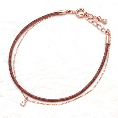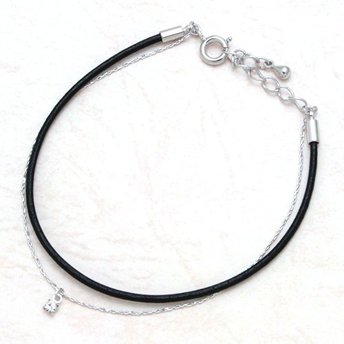 [Jewelry Shop M]【피부에 친절한 니켈 프리】가죽 끈&스와로브스키 2 연팔찌 (v4156)
