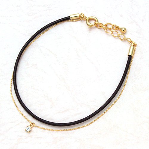 원본상품명: [Jewelry Shop M]【お肌に優しいニッケルフリ?】革ひも&スワロフスキ? 2連ブレスレット (v4156)
