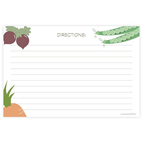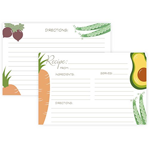 Vegetable Recipe Cards (Set of 50) Double Sided - 4 x 6 Cards