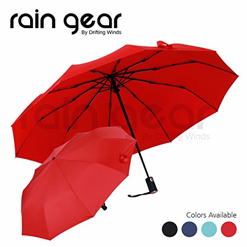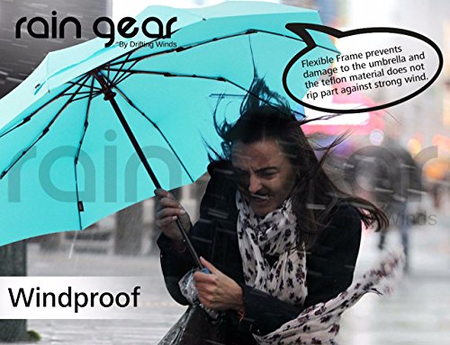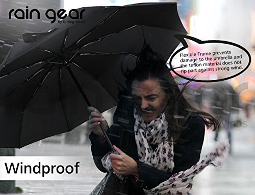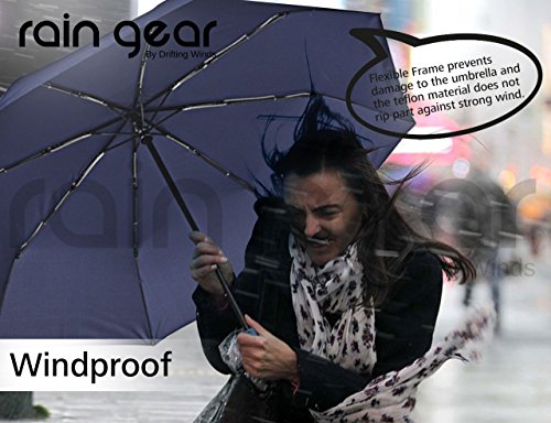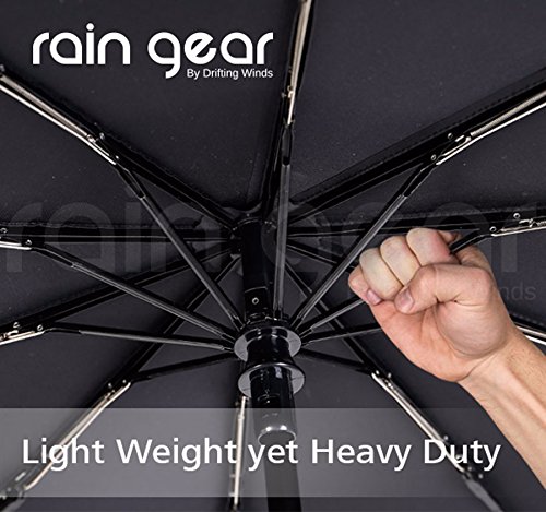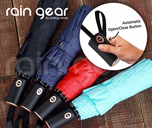 -. Feature : ☂ WINDPROOF & HEAVY DUTY - Super Strong 10-Rib, Windproof design to keep you protected from strong winds, snow and rainfall. Its not your usual light-duty cheapy design with fewer ribs of aluminium material that easily succumb to strong winds and leaves you drenching in rainfall. Cheap is expensive! / ☂ AUTOMATIC OPEN/CLOSE BUTTON - Why get rained on because you cant open that umbrella quickly enough? When you need that quick response getting out of shelter or your car, just press the Auto-Open button and voila! And when you're done, press the button again to do that hard part for you of folding it back. Do Not Manually force open/close the umbrella which could damage this functionality. / ☂ PORTABILITY & QUICK DRY DESIGN - We dont want a drenched handbag do we? The Teflon material dries instantly as it repels any form of precipitation so you can put it back in your bag once you're done using it. And with its compact size of 30cms, it can fit into your hand or travel bags or car's glove compartment to be your companion where ever you go. It comes with a travel pouch to keep it sleekly stored anywhere. / ☂ MULTI-PURPOSE WEATHER PROTECTION - It also protects you from all sorts of precipitation such as Rain, Snow and Hail, and not only that: It also protects you from the dangerous UV rays of the scorching Sunlight. Use it in Outdoors..Golf, Walks, Travel. You wont be disappointed. / ☂ 1 YEAR WARRANTY - Buy with confidence! With such unparalleled quality, we provide our customers a 1 YEAR WARRANTY for product workmanship. Rain Gear is a brand owned by Drifting Winds. Understandably, user-errors like mishandling and counterfeits sold by any other unauthorized vendor are void of this coverage.