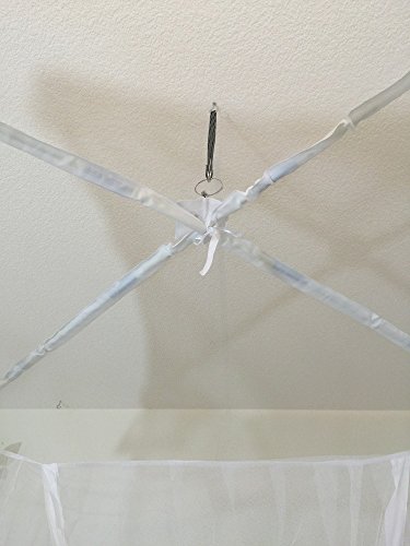 Octorose Poles Cross Top Bed Canopy Functional Mosquito Insect Netting Queen, King and Cal King Bed (White)