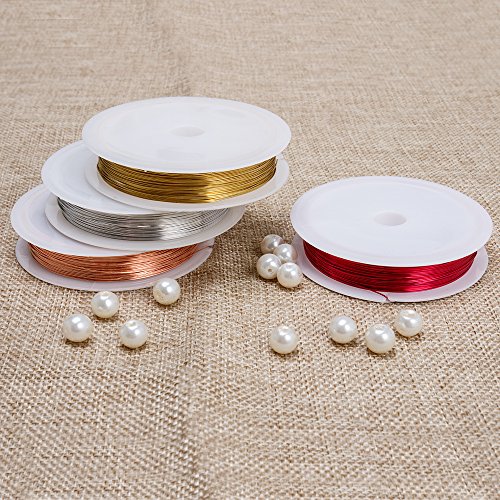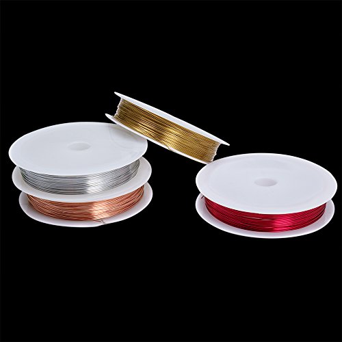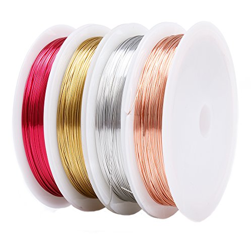DREAMZE 4 Colors 0.4 mm Bare Copper Wire Tarnish Resistant Pure Dead Soft Copper Wire Jewelry Beading Wire Roll for Crafts Beading Jewelry Making
