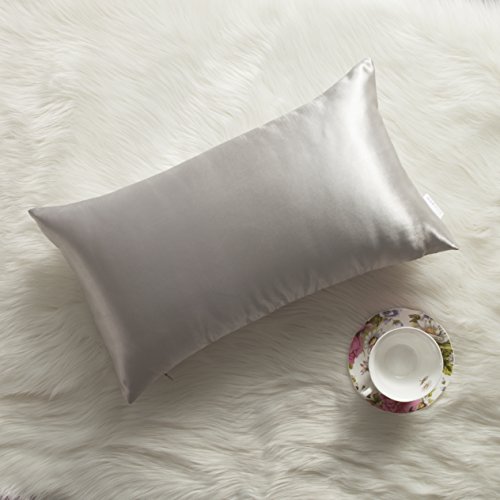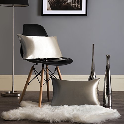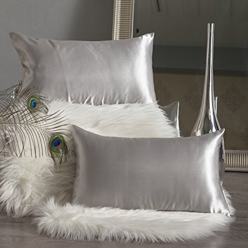Kevin Textile Ultra Sliky Decor Satin Pillowcase Soft Cushion Cover Protect for Sleeping/Bed, With Hidden Zipper,Set of 2, (12x20 Inches Grey)