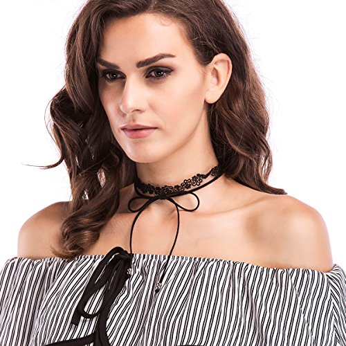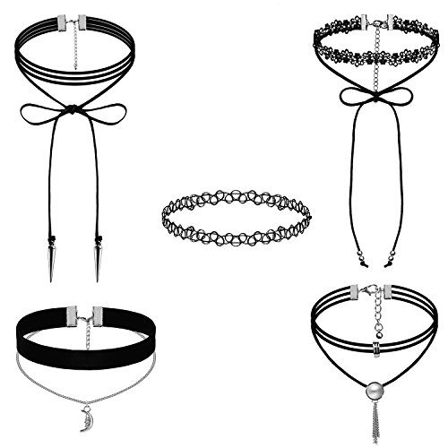 St. Jubileens 5 Pieces Choker Necklaces Vintage Velvet Tattoo Lace Pendant Chain Choker Necklaces Set Black