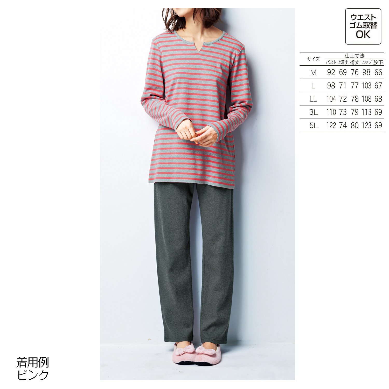 It is a long sleeve T type ladies' pajamas that you can choose your favorite border from 5 colors according to your mood.