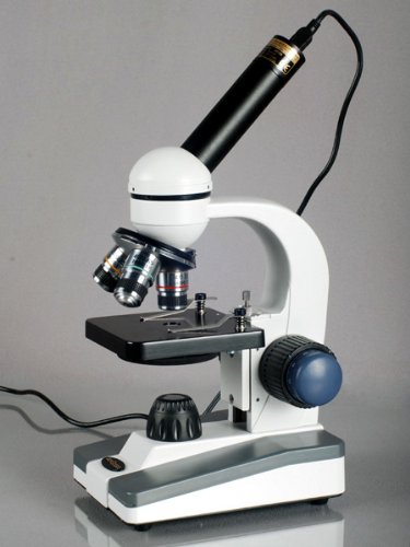 AmScope M150C-PS10 Compound Monocular Microscope, WF10x and WF25x Eyepieces, 40x-1000x Magnification, LED Illumination, Brightfield, Single-Lens Condenser, Coaxial Coarse and Fine Focus, Plain Stage, 110V, Includes Set of 10 Prepared Slides