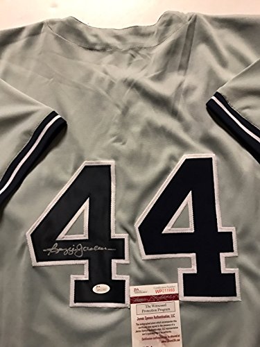 Autographed/Signed Reggie Jackson New York Yankees Grey Baseball Jersey JSA COA