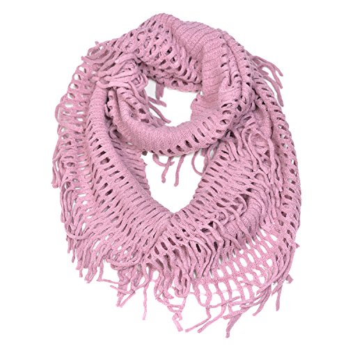 HUE21 Women's Fringe Knitted Crochet Cutout Infinity Scarf Pink Color