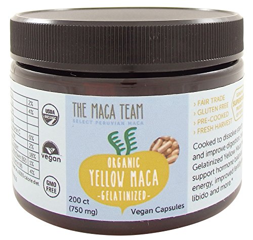 Certified Organic Gelatinized Maca Capsules - Certified Organic, Fresh Harvest From Peru, Fair Trade, Gmo-free, Gluten Free and Vegan - 750 Mg, 200 Ct