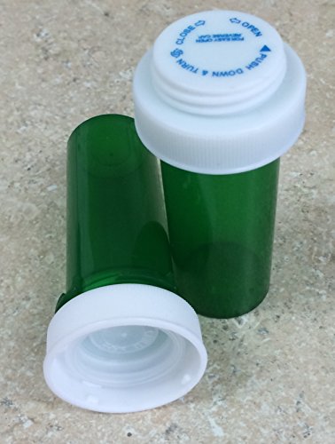 New Plastic Prescription Rx Vials/bottles 25 Pack with Reversible Caps 8 Dram Size color Green