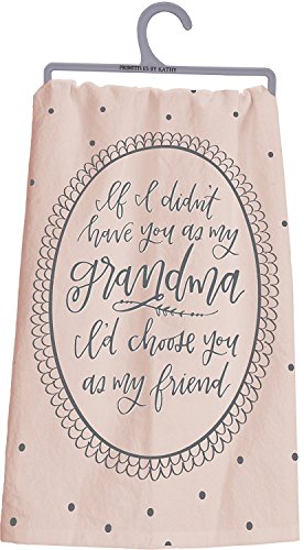 - Dish towel says: "If I didn't have you as my grandma, I'd choose you as my friend" with polka dots