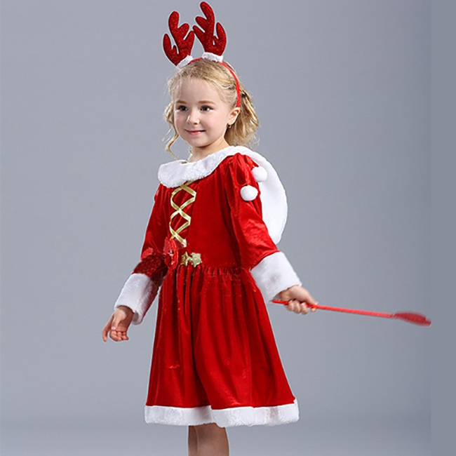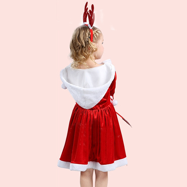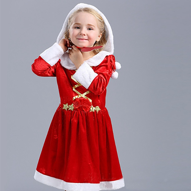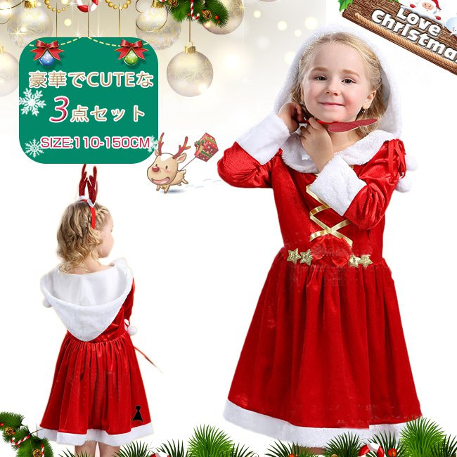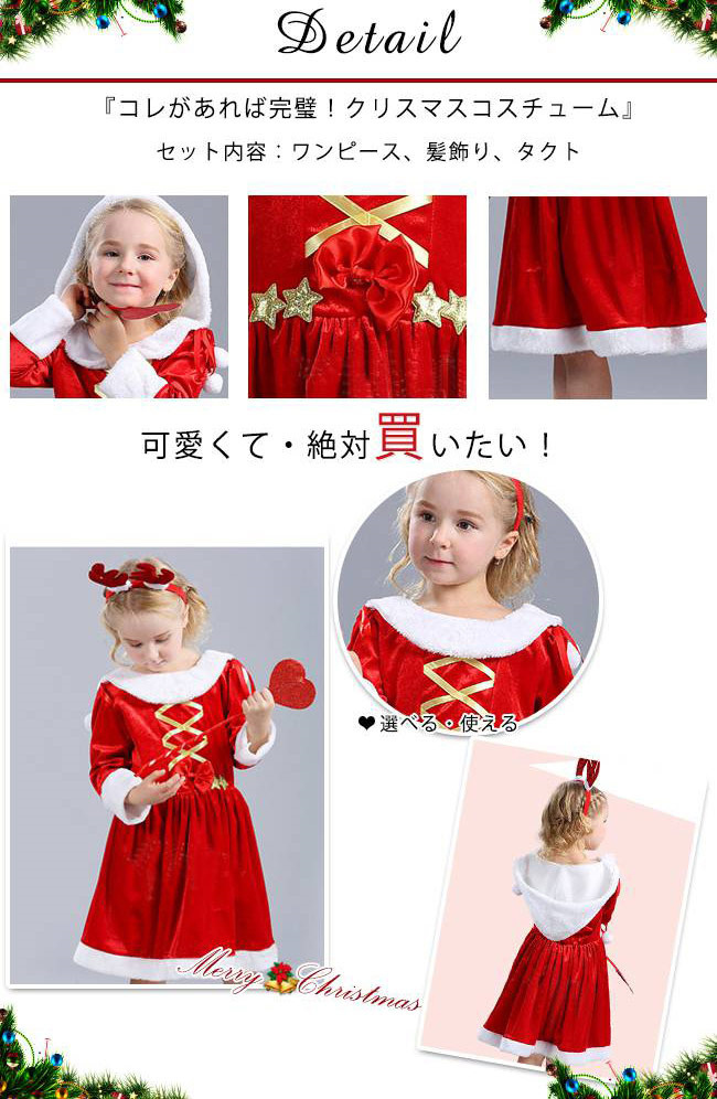サンタ コスプレ 子供 女の子 クリスマス 衣装 長袖 フード付き リボン ワンピース コスチューム ジュニア キッズ 子ども かわいい サンタクロース 仮装 変装 服 セットアップ サンタコス パーティーグッズ イベント用品 xmas Christmas cos