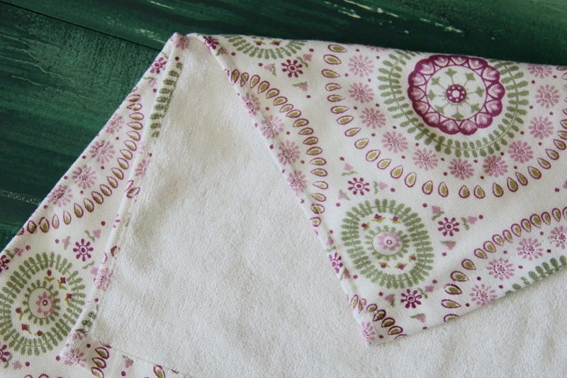 Character:One side printed woven fabric, other side terry