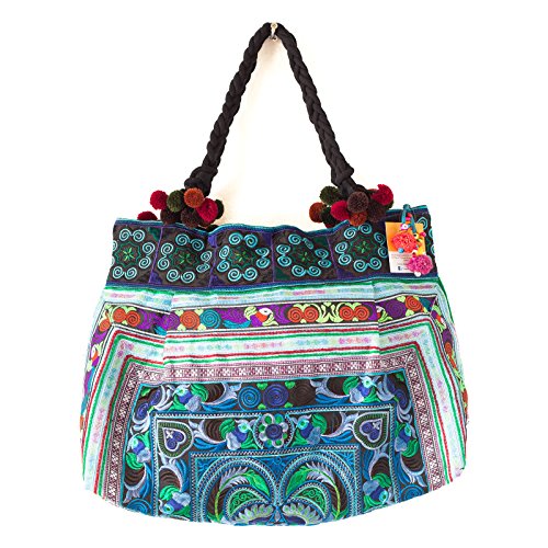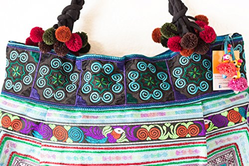 Changnoi Hill Tribe Tote Bag Hmong Embroidered Fabric Large Size Thai Fair Trade