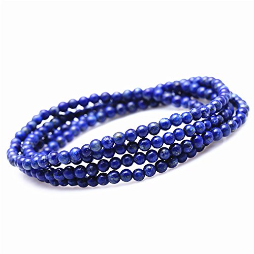 -. Title : Stunning 4mm Round Stackable Simulated-Lapis Bead Stretchy Bracelet / Necklace 28"