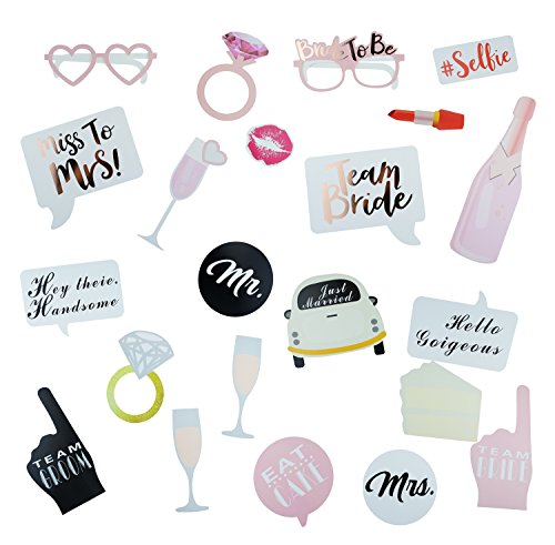 SIX VANKA 22pcs Wedding Photo Booth Props DIY Kit for Wedding Party Decorations Costume Dress-up Accessories