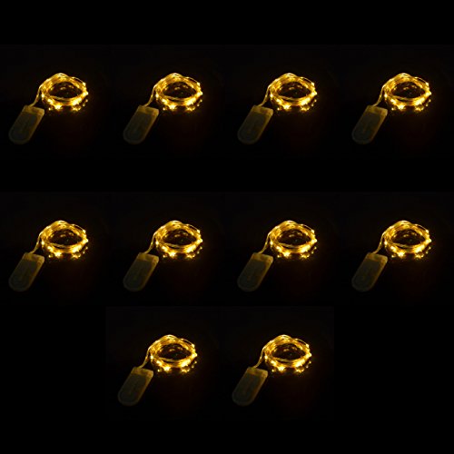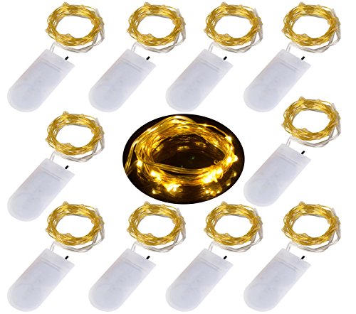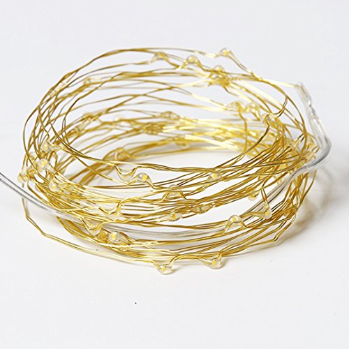 10PCS 2M 20 LEDs Battery-Operated Fairy Lights - Bright Golden Wire. The LED wire lights have a bendable wire with a dew drop shaped bulb.