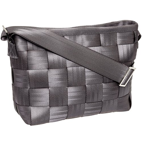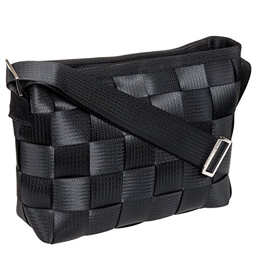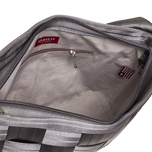This Seatbelt Convertible Tote Bag by Harveys is a one-of-a-kind tote made from eco and animal friendly materials. The exterior is crafted from reclaimed seatbelts that have been woven together to make a tough and durable surface while the inside features a soft lining made from recycled plastic. Wear it as a crossbody or messenger bag thanks to its versatile design and adjustable shoulder strap. 4 zip pockets, 1 slip pocket, and an attached key ring provides you with endless options to store and organize your valuables. Measures 14" x 9.75" x 5".Feature