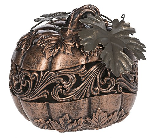 Cut Out Bronze Polystone Pumpkin with Leaves Figurine, 6 Inches Tall