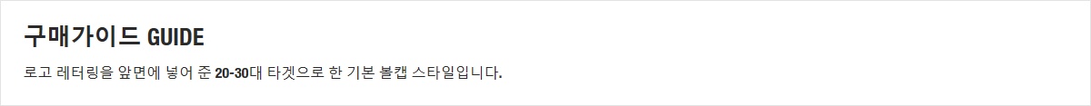 로고 레터링을 앞면에 넣어 준 20-30대 타겟으로 한 기본 볼캡 스타일입니다.