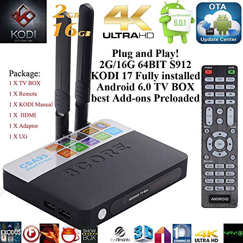 -. Title : Kukele 2017 Plug & Play Ready Fully Unlocked S912 Android 6.0 Marshmallow Smart TV BOX Streaming Media Player [Antenna/4k/OCTA Core/2GB+16GB/Dual WIFI/XBMC KODI 17 Loaded] Watch Anything