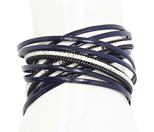 -. Title : Strength フェイク レザー ラップ ブレスレット マグネット タイプ (A1199) アクセサリー ユニセックス レディース 革 皮 スクエア ラインストーン ストーン 5連 磁石 ( ネイビー 紺 )