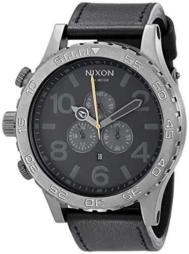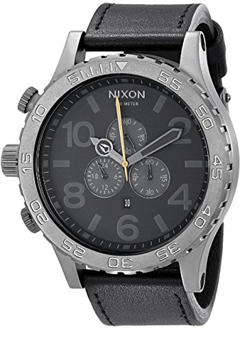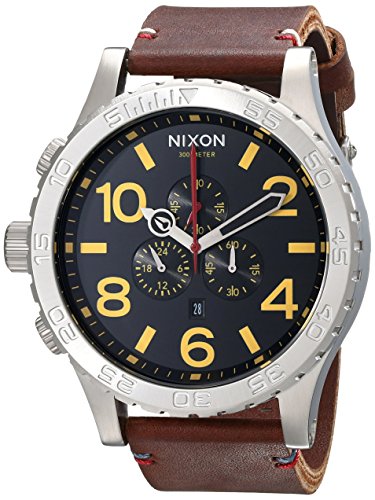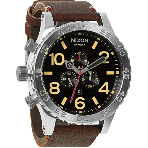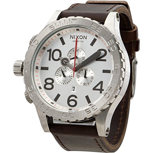 Studio : Nixon Publisher : Nixon Binding : Watch Product Description The Nixon 51-30 Chrono Leather Watch features 6 hand Japanese quartz movement with second sub dial, chrono and date. * Movement: 6 hand Japanese quartz with second sub dial, chrono and date. * Case: Custom 300 meter stainless steel with hardened mineral crystal, external rotating bezel with countdown timer, and screw crown at 9 oclock position. 51.25mm diameter. * Band: Imported leather with custom stainless steel buckle. 25mm wide. * Item: 6102-A124680 0